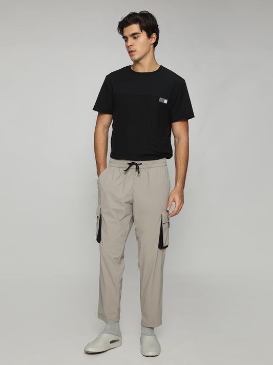 Beige 4 Way Stretch Cargo Male Pants