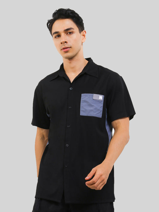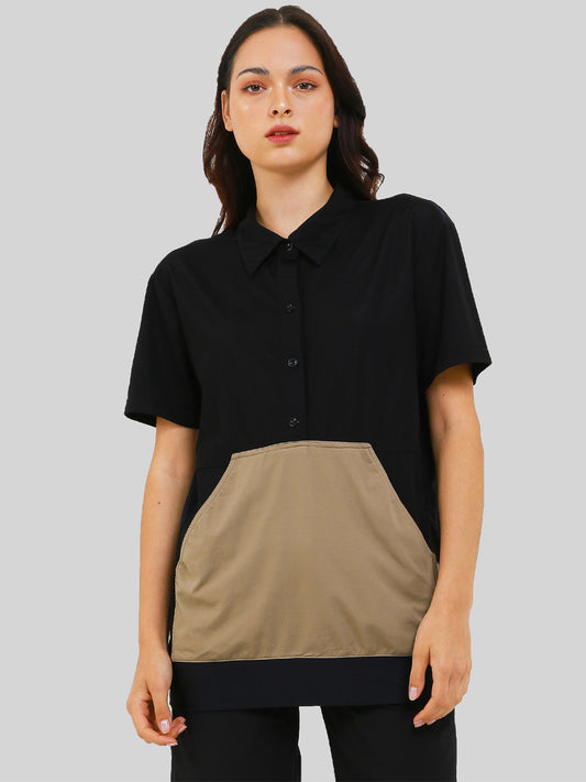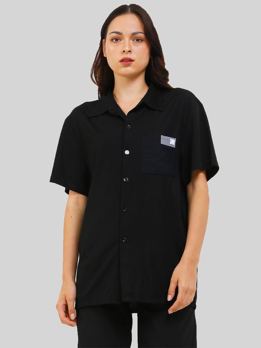 Unisex Front Pocket Utilitarian Shirt Female Black