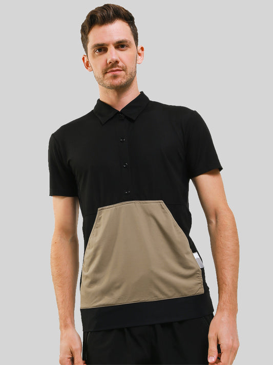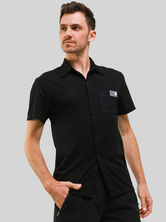 Unisex Front Pocket Utilitarian Shirt Male Black