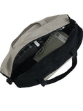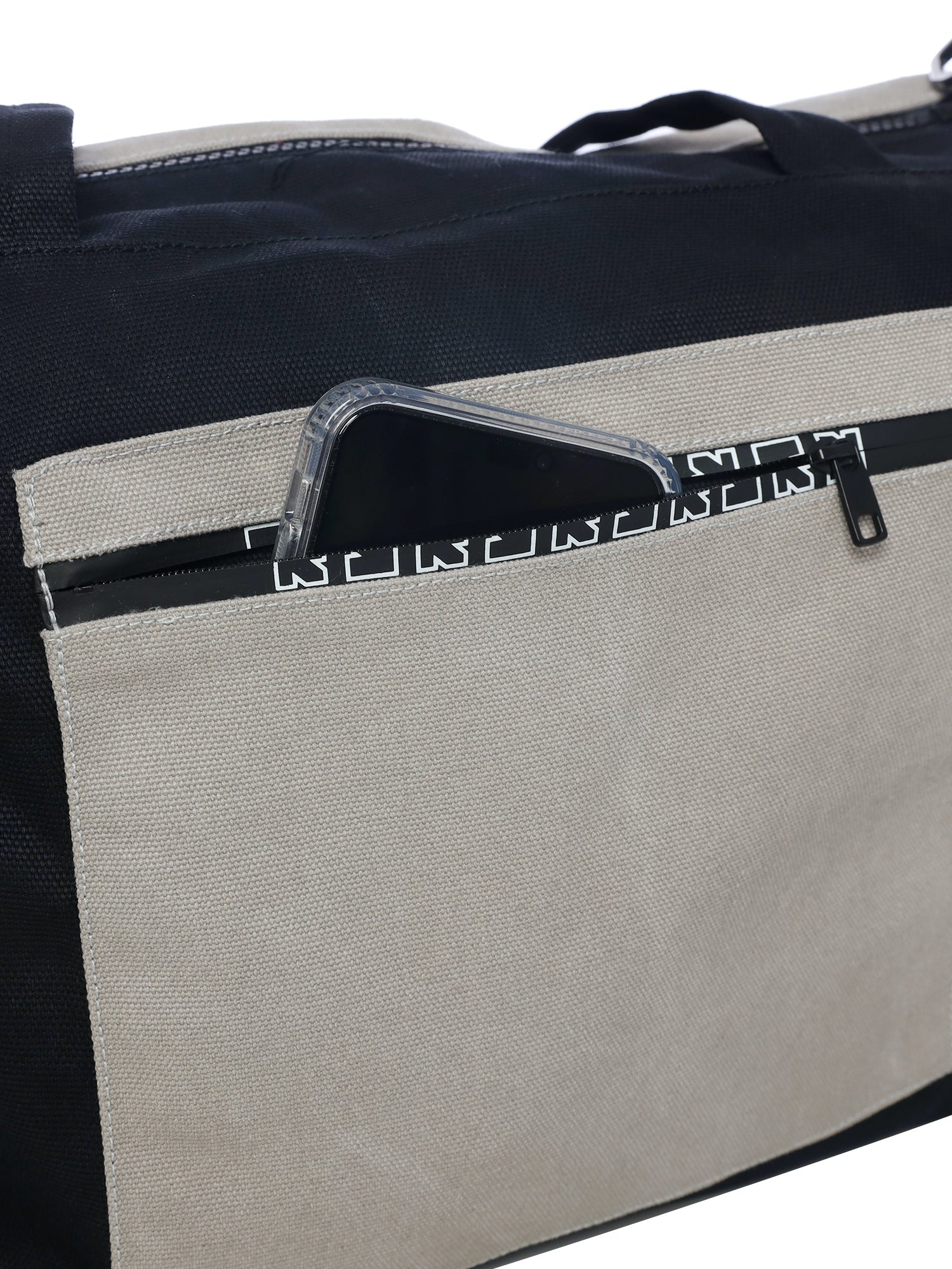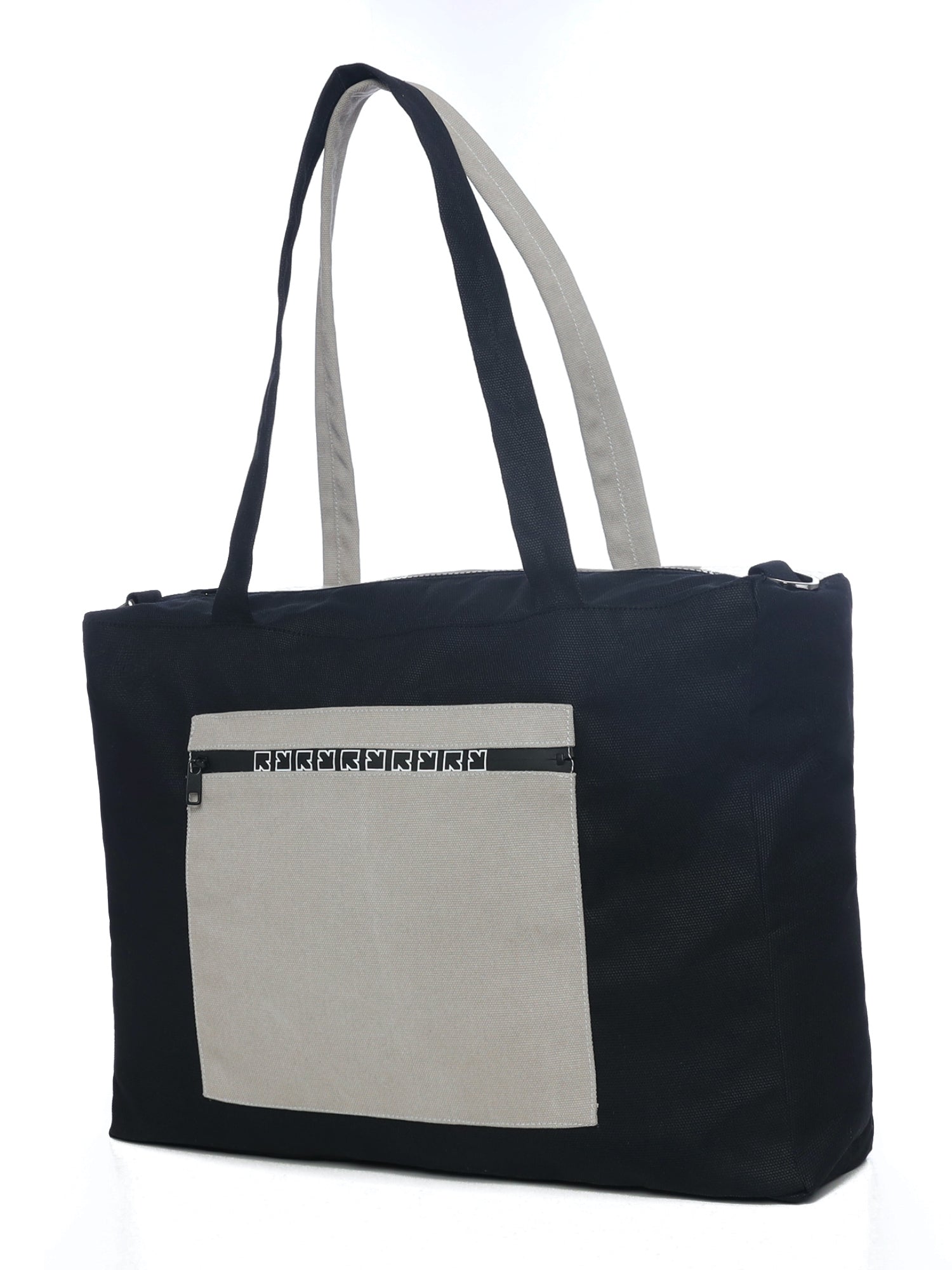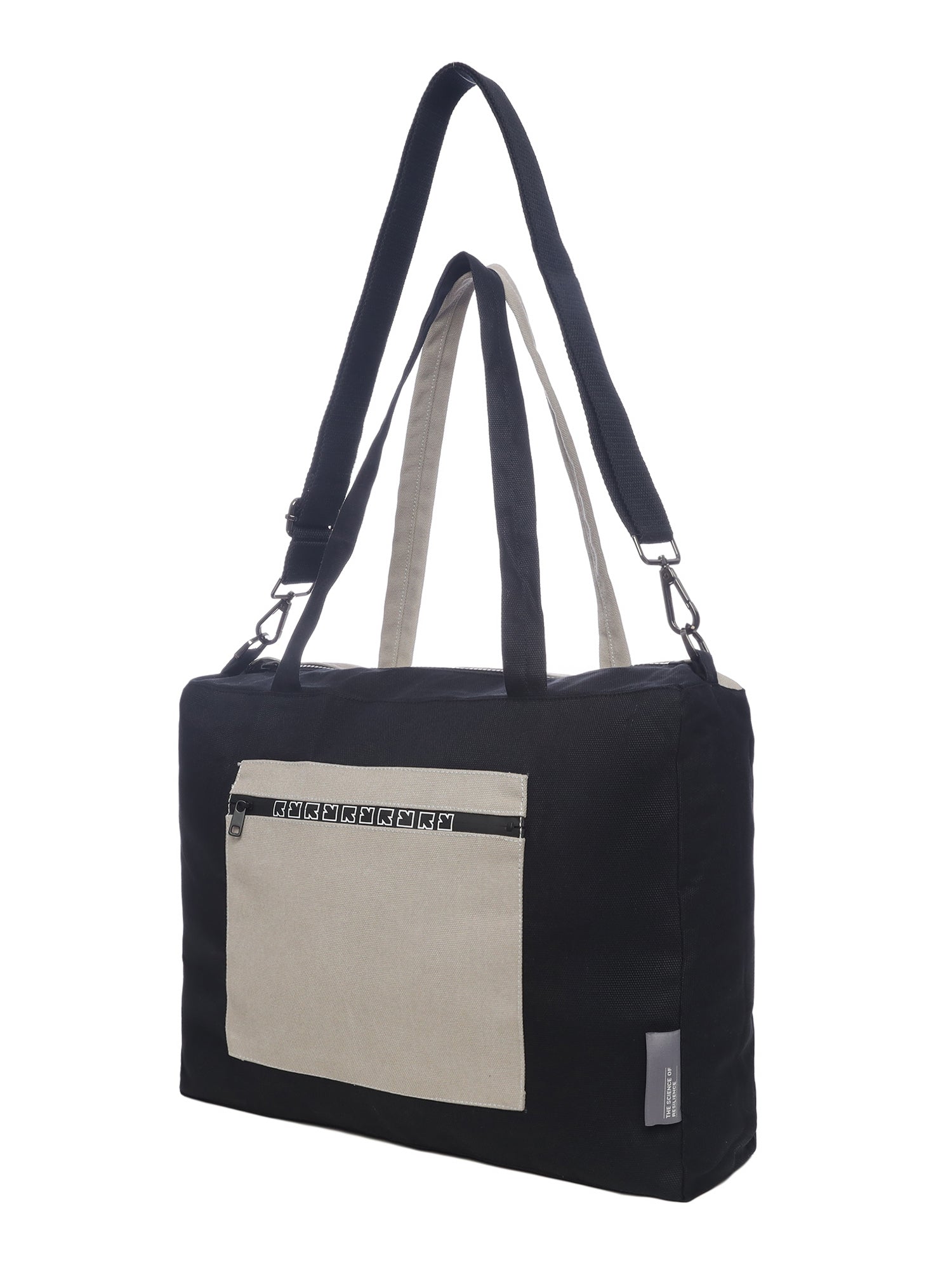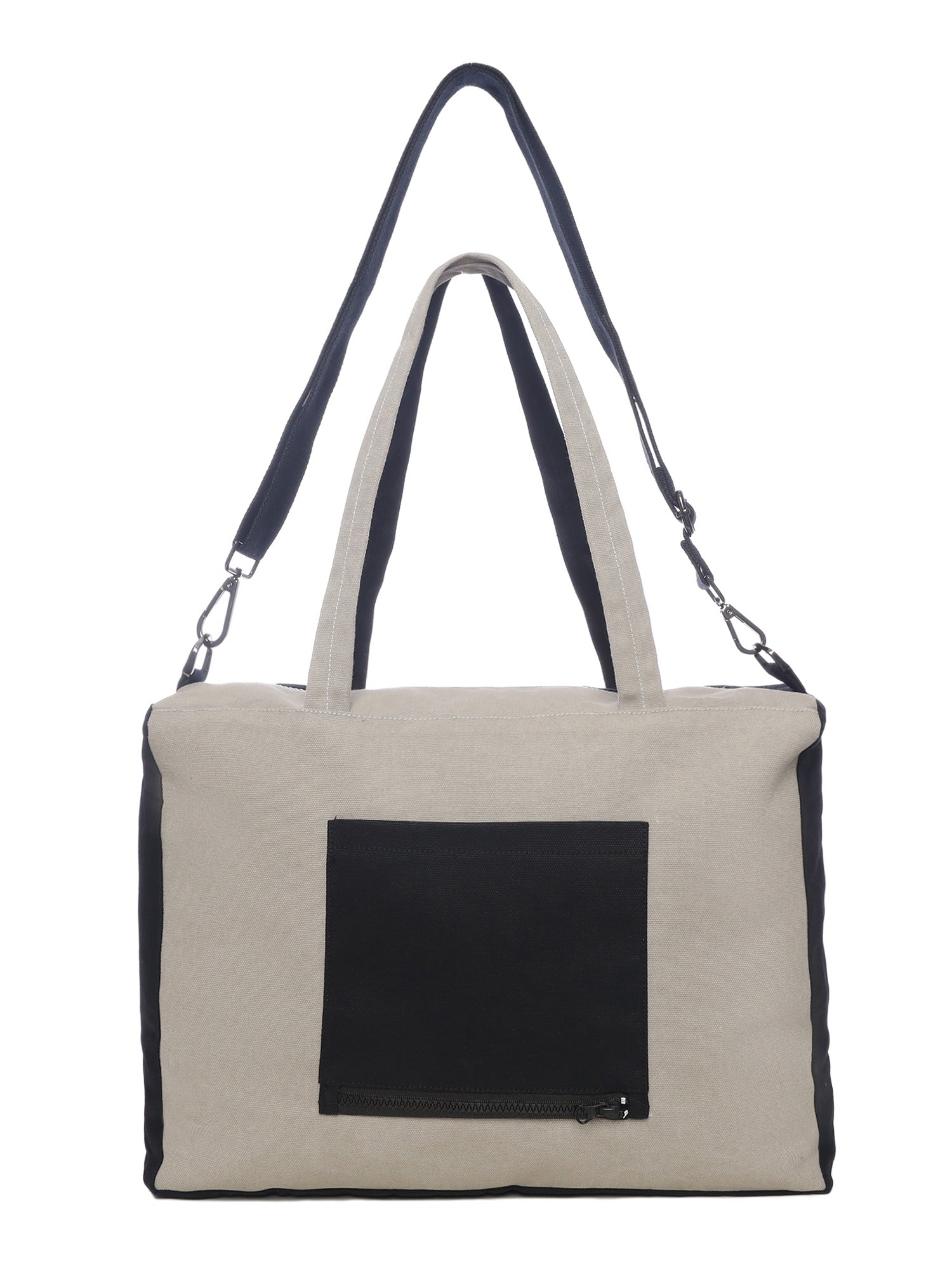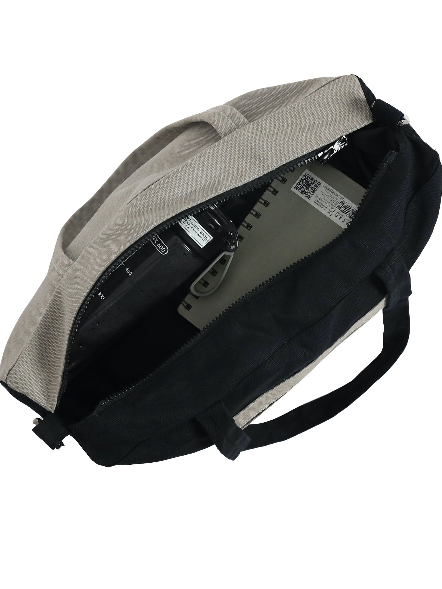 An easily accessible front pocket with a zipper is included, allowing you to store personal belongings worry-free. We also incorporated a detachable main zipper for seamless access, accommodating items such as tablets, laptops, water bottles, notebooks, gym clothes, or anything else in this two-tone colored bag. The multifunctional back sleeve can be transformed into a regular pocket or unzipped to attach your bag to your traveling luggage or suitcase. Additionally, a shoulder strap is provided for convenient sling use.