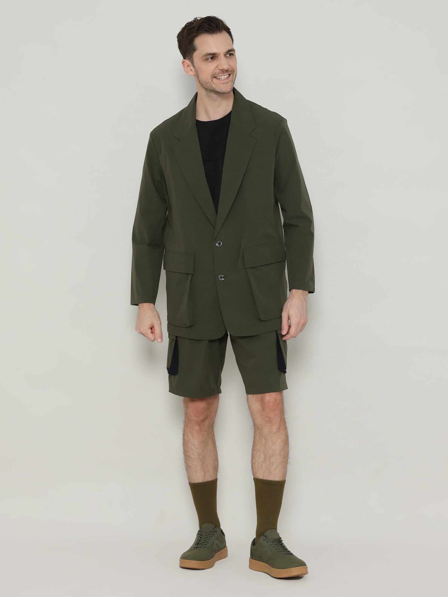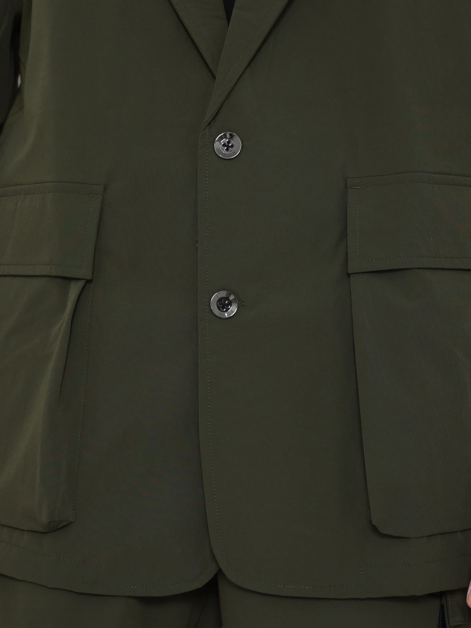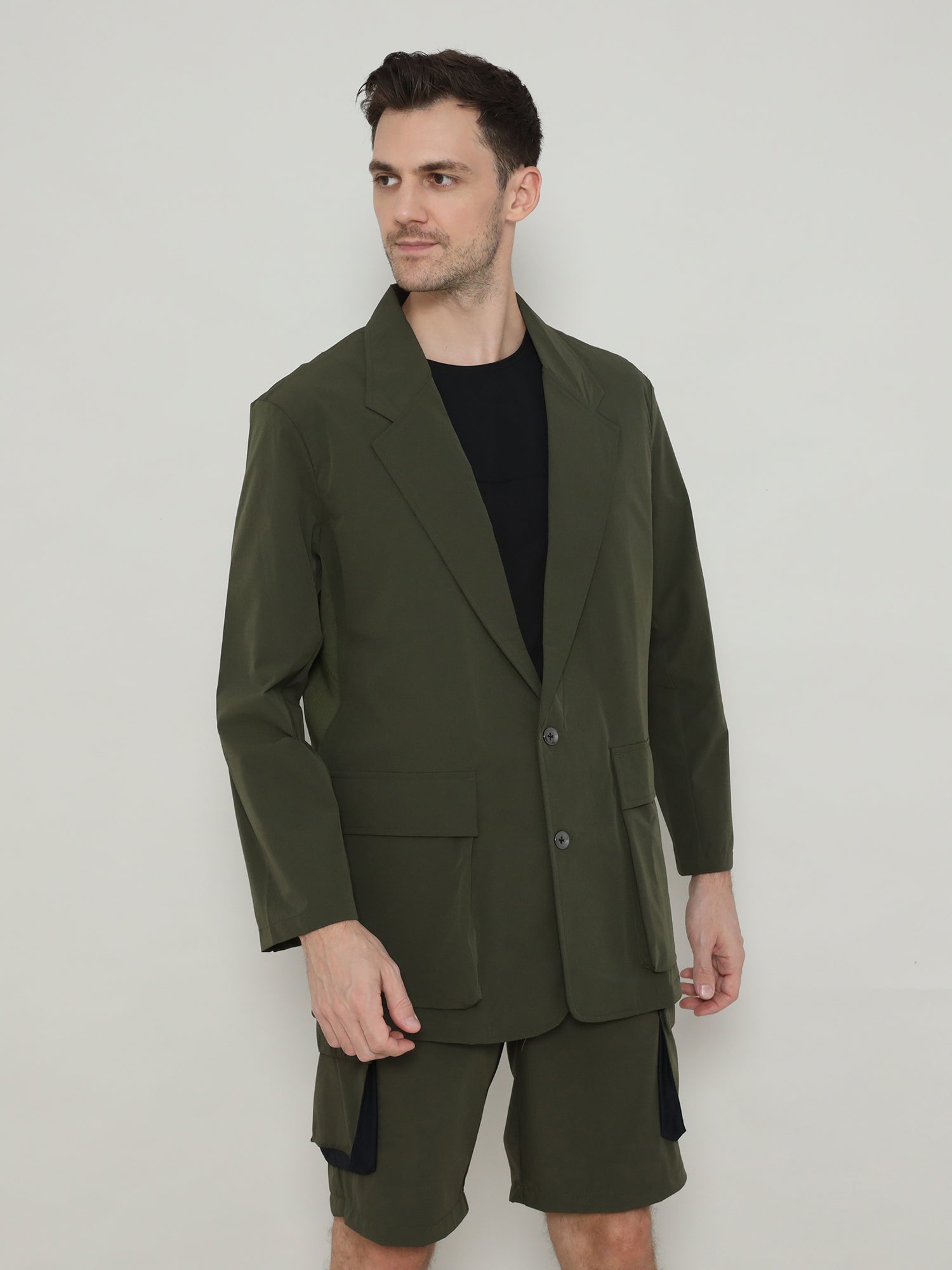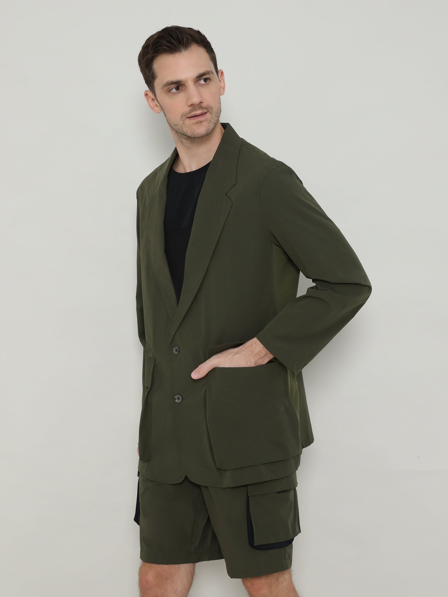 Utility is at the core of the design, featuring two oversized flap pockets that provide generous space for everyday essentials. Subtle inner compartments add secure storage while keeping the profile clean and uninterrupted. With a two-button front closure and soft-yet-strong and durable finish, this jacket eliminates the excess of traditional suits while maximizing freedom of movement.
