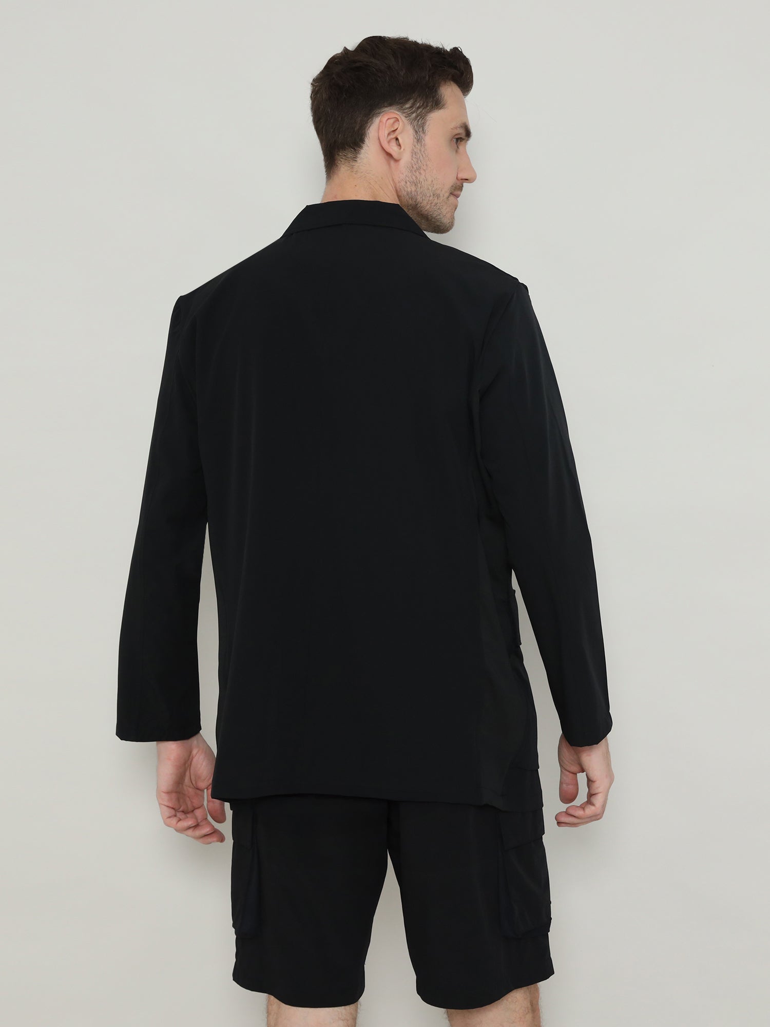 Utility is at the core of the design, featuring two oversized flap pockets that provide generous space for everyday essentials. Subtle inner compartments add secure storage while keeping the profile clean and uninterrupted. With a two-button front closure and soft-yet-strong and durable finish, this jacket eliminates the excess of traditional suits while maximizing freedom of movement.