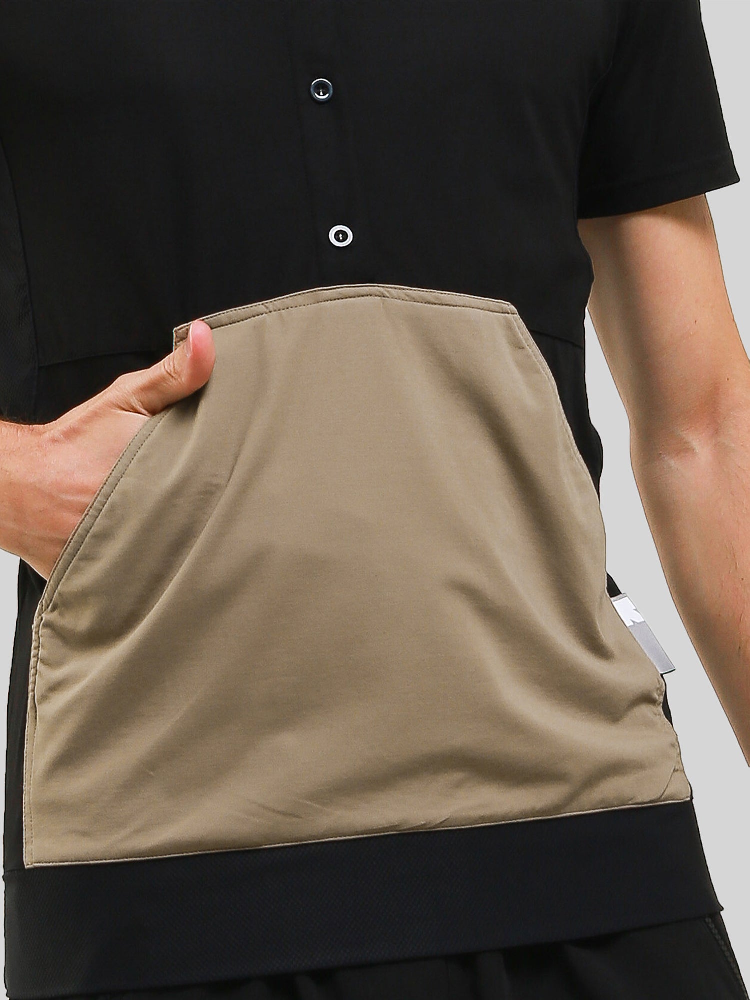Unisex Front Pocket Utilitarian Shirt Male Black